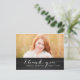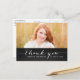 Trendy White Script Rustic Graduation Thank You Card. Design by Elke Clarke © Visit our shop www.zazzle.com/monogramgallery* for more colours and styles. Add your own photo and text. A simple white typography handwritten script font text overlay on a black chalkboard background (printed photo effect) with the words "Thank You". Replace sample photo with your own.