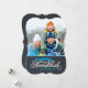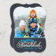 Simple chic modern Hanukkah holiday photo card elegant calligraphy script typography on a faux chalkboard texture background. Personalize the design with your custom family photo and name. Click the "Customize It" button to add more text and photos on the back and create your own unique one of a kind design!