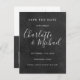 Featuring signature style names, this elegant chalkboard save the date card can be personalised with your special wedding day information in chic white lettering. Designed by Thisisnotme©