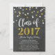 Graduation party invitation custom photo card class of 2017 in silver, white and gold confetti pattern with rustic chalkboard background and hand lettered style text.