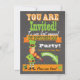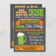 Super cool and modern St. Patrick's Day party invitations with big mug of green beer on the front and a funky, fiddle playing Leprechaun on the back to welcome your guests with great typography, banners and a chalkboard background. So eat, drink and be Irish like McBooboo. Hand drawn illustration by McBooboo.