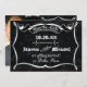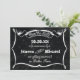 COLOR PALETTE: Black and white DESIGN COLLECTION: A very modern, vintage style, chalkboard typographic typography wedding invitation set with matching items for a collection of products necessary to make your special day complete! A hand drawn chalk swirl flourish frame with dots surrounds a curved text banner with a heart tucked into each corner and the text "Save the Date" along with your wedding day, your names and your city. There are fancy flourished swirled dividers and an old fashioned diagonal "and" ampersand. On the reverse side is your message and your website information (or anything else you want to communicate) along with an engagement photograph.
