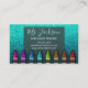 Turquoise blue faux glitter sparkles behind an array of colourful crayons laid out in a rainbow pattern. Easily update the name, job title, and contact info on front and back. Chalkboard script and fonts are used to mimic a teacher's classroom. Available in many other sparkly colours.