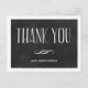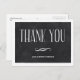 This charming thank you post card features bold, whimsical lettering, a chalkboard background, and a white border with hand-drawn edges.
