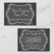 COLOR PALETTE: Black, white and grey tones. BUSINESS CATEGORIES: This design can be used across a wide range of businesses but is especially suited to fine gift shops, retail, and restaurants or cafes (especially if you use chalkboards for your menu selections). DESIGN COLLECTION: Matching original art chalkboard business cards. This modern typography chalkboard style wedding invitation sets design was created from hand lettered artwork drawn by Audrey Jeanne Roberts. Reminding us of simpler times in the vintage era yet it is a very elegant, sophisticated and contemporary stylish invite set! All of the calligraphy elements are original art that have been embellished with swirls, swashes, flourishes and other swirled leaf elements, dots and shadows. The bracket style frame has the feel of a French cafe sign. ON THE REVERSE SIDE: is a matching yet different swirling frame with leaves the hand drawn soft flourish swirl in the background. This set is easy to personalise using the template fields provided. There is a complete collection of matching products available.