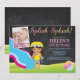 Chalkboard Water Slide Pool Birthday Party Invitation with custom photo. Summer Splish Splash. Girl Birthday Party Invite. Beach Ball. Swimming. Swimsuit. Birthday Bash. Pink Purple Lavender Violet Yellow Orange Blue Red Green. 1st First Birthday. 1st 2nd 3rd 4th 5th 6th 7th 8th 9th 10th 11th 12th 13th 14th 15th, Any Age. Printable Digital. For further customisation, please click the "Customise it" button and use our design tool to modify this template.