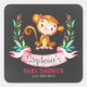 Chalkboard Watercolor Monkey Girl Baby Shower Square Sticker