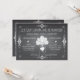 Popular chalkboard style wedding rehearsal and dinner invitation is outlined by a lovely swirling scroll border and given a chalk effect. Original illustration of a rustic mason jar holding an hydrangea flower bouquet is accented with a white heart that holds the couple's initials on the back. Room for ceremony rehearsal and dinner information on the front. Whimsical typography heading of "Let's eat, drink, and be married" gives this rehearsal dinner invitation a fun and casual vibe. Coordinating items also available.
