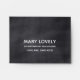 Simple, rustic chalkboard self-addressed custom RSVP envelope has personalised name in simple, white lettering. Vintage chalkboard look background. Custom envelopes for any special occasion or event, including rustic wedding, country theme party, teacher retirement, etc.