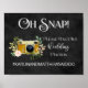Chalkboard effect background with watercolor colour camera. Sign reads: Oh Snap! Please tag our wedding photos. Add your hashtag.