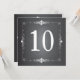 Popular chalkboard style table number card is outlined by swirl scroll border and given a chalk effect. Whimsical typography gives it a casually elegant look. Coordinating items also available.