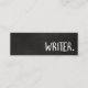 Slim business card with writer in a handwritten font on a chalkboard background. Write your name and contact info on the back.