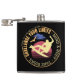 The flask itself is fine. It’s a cheap flask, obviously bought in bulk, however am prepared to overlook that. Given that it is a personalized item, I would have liked to have seen gift boxing instead of the generic packaging. Terrible printing, and/or quality. It’s a cheap, tacky vinyl. It is not cut straight and is also applied in a way that it is overhanging the bottom, causing the glue to catch on items and it will eventually roll and tear, damaging the wrap.
