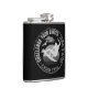 The flask itself is fine. It’s a cheap flask, obviously bought in bulk, however am prepared to overlook that. Given that it is a personalized item, I would have liked to have seen gift boxing instead of the generic packaging. Terrible printing, and/or quality. It’s a cheap, tacky vinyl. It is not cut straight and is also applied in a way that it is overhanging the bottom, causing the glue to catch on items and it will eventually roll and tear, damaging the wrap.