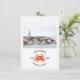 A rustic nautical wedding save the date featuring an illustration of a red crab with custom photo on front. Back is chambray colour watercolor inspired design.