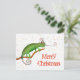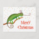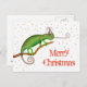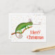 A chameleon is walking surrounded by confetti in an end of year celebration. Customise the inside text of this Christmas card with your own text.