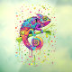 Chameleon Paint Stains Watercolor Style bizarre surreal art . Original Vector Logo Illustration Copyright BluedarkArt.