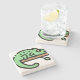 The coasters are gorgeous, a quality feel and heavy weight. They look like a precious archeological find. A rustic stone juxtaposed with a modern floral black and white print. I like the way the print goes slightly imperfect on the cut stone edges giving them a kind-of natural beauty.
