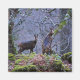 A pair of chamois, mum and calf, take some cover in the forests of the Natural Park of Redes (Asturies)