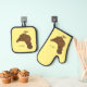 Chamois polish chicken cartoon illustration oven mitt & pot holder set