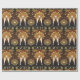 New Years Eve wrapping paper with a party atmosphere. Golden champagne flutes clinking together with gold coloured fireworks exploding all around. Art Nouveau / art deco style design.