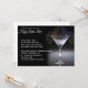 There is no better way to start each new year than a New Year's Eve party! Let your choice of invitation set the mood for your guests - from fresh and funky to classic elegance. This design has a black background. To the right side is a clear martini cocktail glass backlit with white. Behind the glass are three firework blasts. Your text is justified to the left side. Matching postage is available in my postage category.
