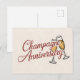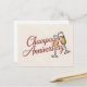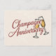 An elegant and festive 2D digital graphic featuring the words "Champagne Anniversary" written in a sophisticated dark red cursive script. Behind the text, two stylised champagne flutes filled with a golden bubbly liquid are shown clinking together in a toast. Set against a neutral off-white background, this high-quality illustration is perfect for wedding anniversaries.