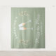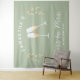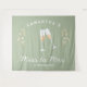 Miss to Mrs personalized retro bachelorette party tapestry in sage green and white with champagne glasses is perfect as a bachelorette party photo backdrop. Celebrate your bridal shower in style with the perfect champagne party theme in sage green and white, the perfect theme for the nostalgic vintage 70s bride and her bridesmaids.