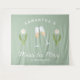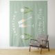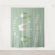 Miss to Mrs personalized retro bachelorette party tapestry in sage green and white with champagne glasses and a white tulip is perfect as a bachelorette party photo backdrop. Celebrate your bridal shower in style with the perfect champagne party theme in sage green and white, the perfect theme for the nostalgic vintage 70s bride and her bridesmaids.