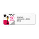 Return address labels for your 60 and Sassy party invitations, with champagne flute and balloons motif, in hot pink, black and gold, and easily personalised name and address details.
