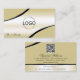 Champagne Beige Curved Decor Lines Logo QR Code Business Card
