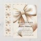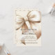 Celebrate the upcoming arrival of your little one with this elegant baby shower invitation. Featuring a beautiful watercolor illustration of a champagne-coloured bow, this design exudes a sense of gentle sophistication. The soft, neutral colour palette makes it perfect for welcoming both baby boys and girls. The back of the card features a charming repeating pattern of bows and a convenient QR code for easy RSVPs. This invitation is perfect for a mum-to-be who appreciates classic and refined style for her special day.
