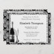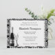 Elegant Bridal Shower invitation with a bottle of champagne and glasses. Background is an elegant black and white pattern. Customise with your shower info.