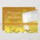 A chic engagement party invitation featuring a glass of golden bubbly with a grunge background, stars and bubbles. (Vecteezy.com champagne toast by vector open stock). The card is easy to customise with your wording, font, font colour, paper shape options and choice of six paper types.