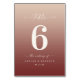 Champagne & Cinnamon Red Ombre Monogrammed Wedding Reception Dinner Table Numbers. This modern chic Table Card is simple classic and elegant with a subtle ombre gradient fade and a pretty signature script calligraphy font with tails. Shown in the new Colorway. Available in several colour options, or feel free to edit the colours from within the editor (click customise further while personalising).