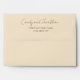Champagne coloured mailing envelope for your wedding invitations and features your name and address printed on back flap in black, modern script style. Personalise your envelope by editing and replacing name and address with your own. Edit further to change font style or colour. Select your envelope size that fits your invitation.