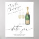 Watercolor elegant champagne bottle with two glass of champagne and text "Pop the champagne. She is changing her name.".