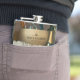 The flask itself is fine. It’s a cheap flask, obviously bought in bulk, however am prepared to overlook that. Given that it is a personalized item, I would have liked to have seen gift boxing instead of the generic packaging. Terrible printing, and/or quality. It’s a cheap, tacky vinyl. It is not cut straight and is also applied in a way that it is overhanging the bottom, causing the glue to catch on items and it will eventually roll and tear, damaging the wrap.
