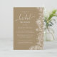 This invitation features white line-drawn flowers and custom calligraphy. The soft champagne colour is the perfect backdrop for this invitation.
