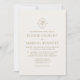 A sophisticated wedding invitation featuring a delicate floral illustration inside an oval frame with space for personalised initials. Designed in an elegant champagne colour palette, this invitation blends classic typography with a refined minimal layout. Perfect for couples seeking timeless, romantic wedding stationery. All text and colours can be fully edited, making it easy to match your wedding theme or create your own colour variation.