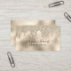 The front of this business card for makeup artists features a luxurious champagne-coloured metallic foil background bordered with glam champagne glitter drips. Your name on front of the card is in elegant script typography with flourishes at both ends of your name (don't remove the boxes on the name portion of the template). It is very easy to replace all text using the personalisation template.