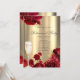 Champagne Glass Red Roses Gold Retirement Party Invitation
