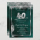 Champagne Glass Silver Confetti Green 40th Invitation