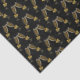 Tissue paper with a pattern of champagne glasses filled with wine clinking together. Little gold ribbons on the stem. Black damask pattern.
