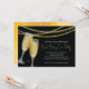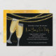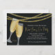 Let your party sparkle with this New Year's Eve party invitation. It features a black background accented with glasses of champagne and three strings of gold faux glitter. Hand written style text offers a trendy look.