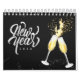 Champagne Gold Black Wine Glass Confetti Modern Calendar