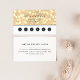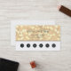 Bubbly chic loyalty cards feature a background pattern of bokeh lights in golden champagne tones, with your custom heading, loyalty offer terms, and six punchouts. Shown with "enjoy 20% off after five visits". Personalise the reverse side with your business contact information. For a metallic look, we recommend upgrading to the Pearl finish paper.