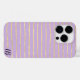 Features a stripe pattern in champagne gold simulated foil, on a purple background. Personalise with initials.