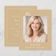 A soft champagne gold colored background, white text. Personalize and add your photo and the details.