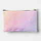 This cosmetics accessory bag features a champagne peach to pink purple ombre watercolor wash background with a customisable name in a pretty simple clean font.